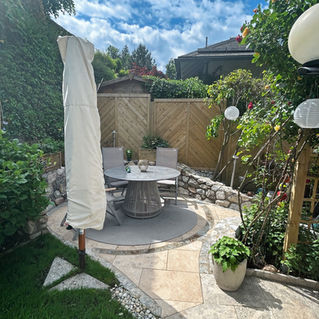 Eine Gartenoase zum Entspannen und Wohlfühlen! Im Salzburger Stadtteil Aigen durften wir im Juli 2025 eine weitere Außenanlage an unsere KundIn übergeben. Diesmal mit einem besonderen Highlight: Eine rund gesetzte Steinmauer, die durch die integrierte Beleuchtung am Abend besonders schön in Szene gesetzt wird. Naturstein aus Travertin und eine Kleinsteinfassung runden den neuen Außenbereich ab.